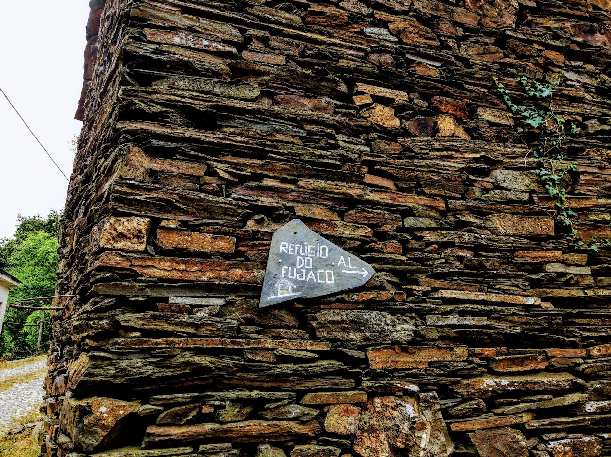 No Refúgio do Fujaco, o acesso à casa é feito por elegantes escadas de pedra de xisto, que levam o visitante a uma vista da montanha e do postal da aldeia.